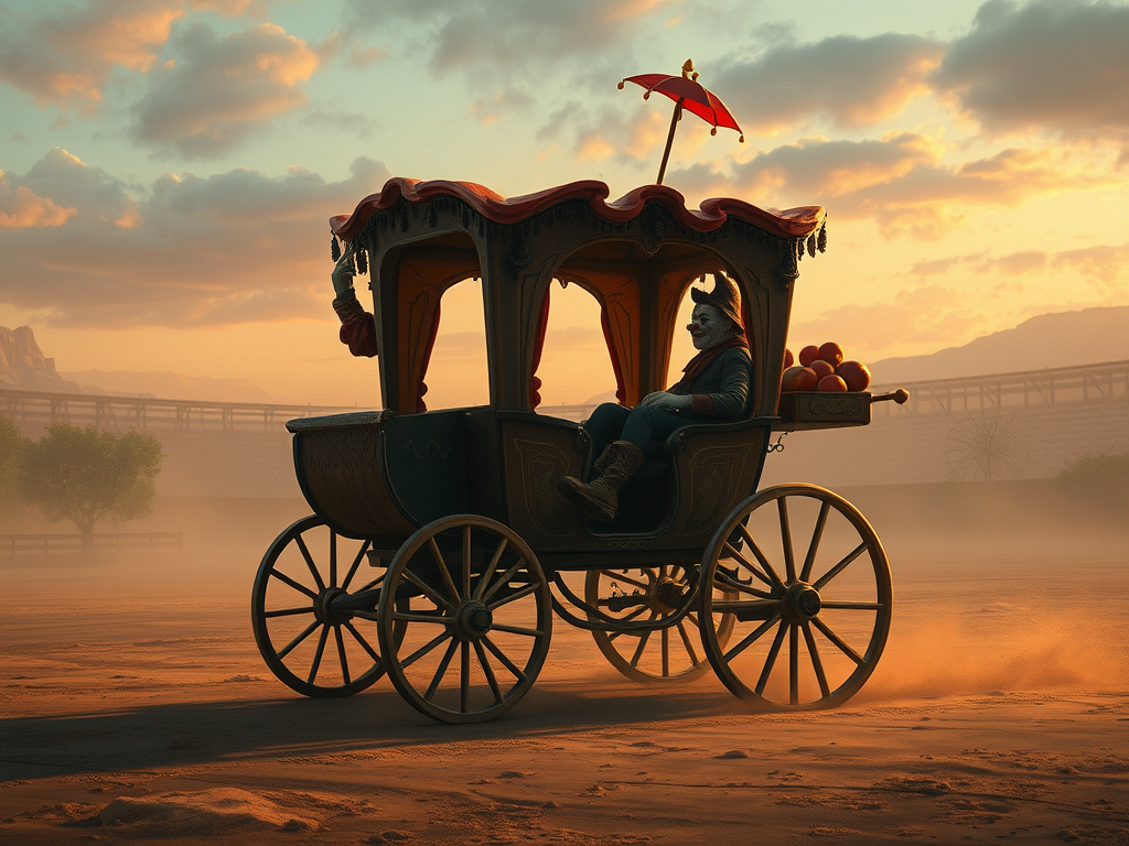 To disavow you of the apparent risk or danger the pony and carriage might be something brought into the ‘ring’ (it was open air, dusty and improvised) by a clown or dwarf (though it wasn’t) as, looking at it, you can reach its roof at shoulder height, in other words, this ‘carriage’ could only carry one person (such as a child) I may sit atop to ‘drive’, or lead it/run it around the circuit, even though it is carriage-like in look and behaviour I don’t recall any horses or ponies, but it is powered (electric car or internal combustion engine).