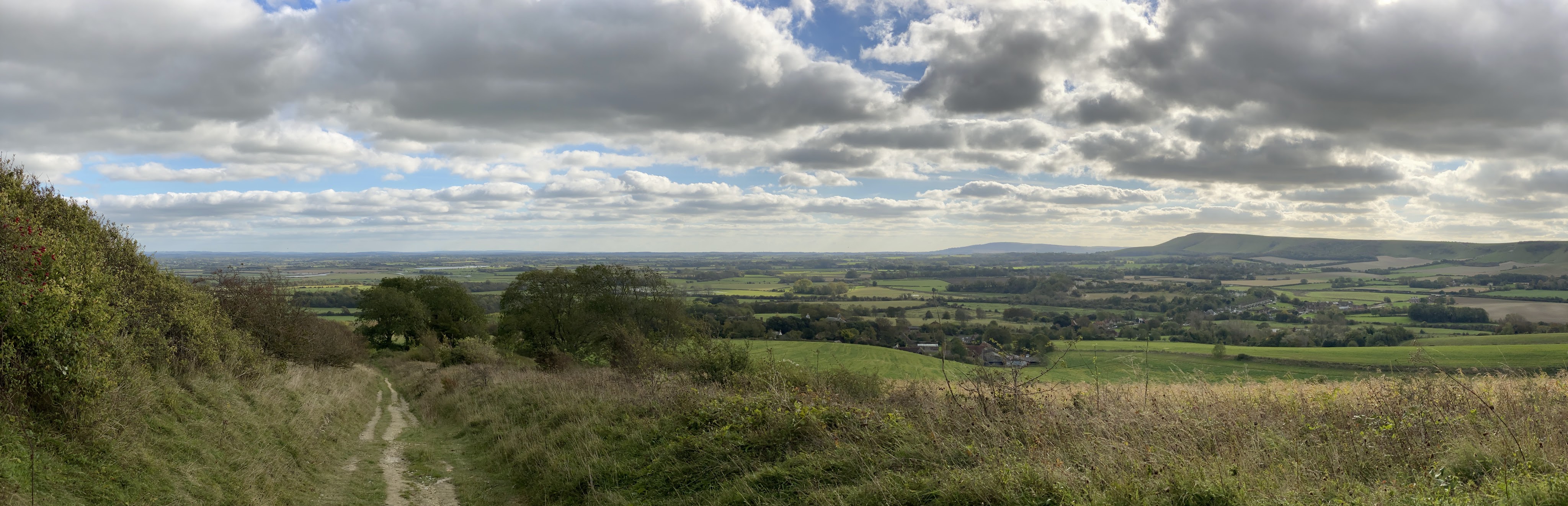 After a day in bed with a bad cold this short walk is just to reawaken my legs and get some fresh air into my lungs. It is also a change to enjoy the view, the early autumn colours and sounds, walk the dog and think about where else to live other than Lewes – like in the village of Glynde.