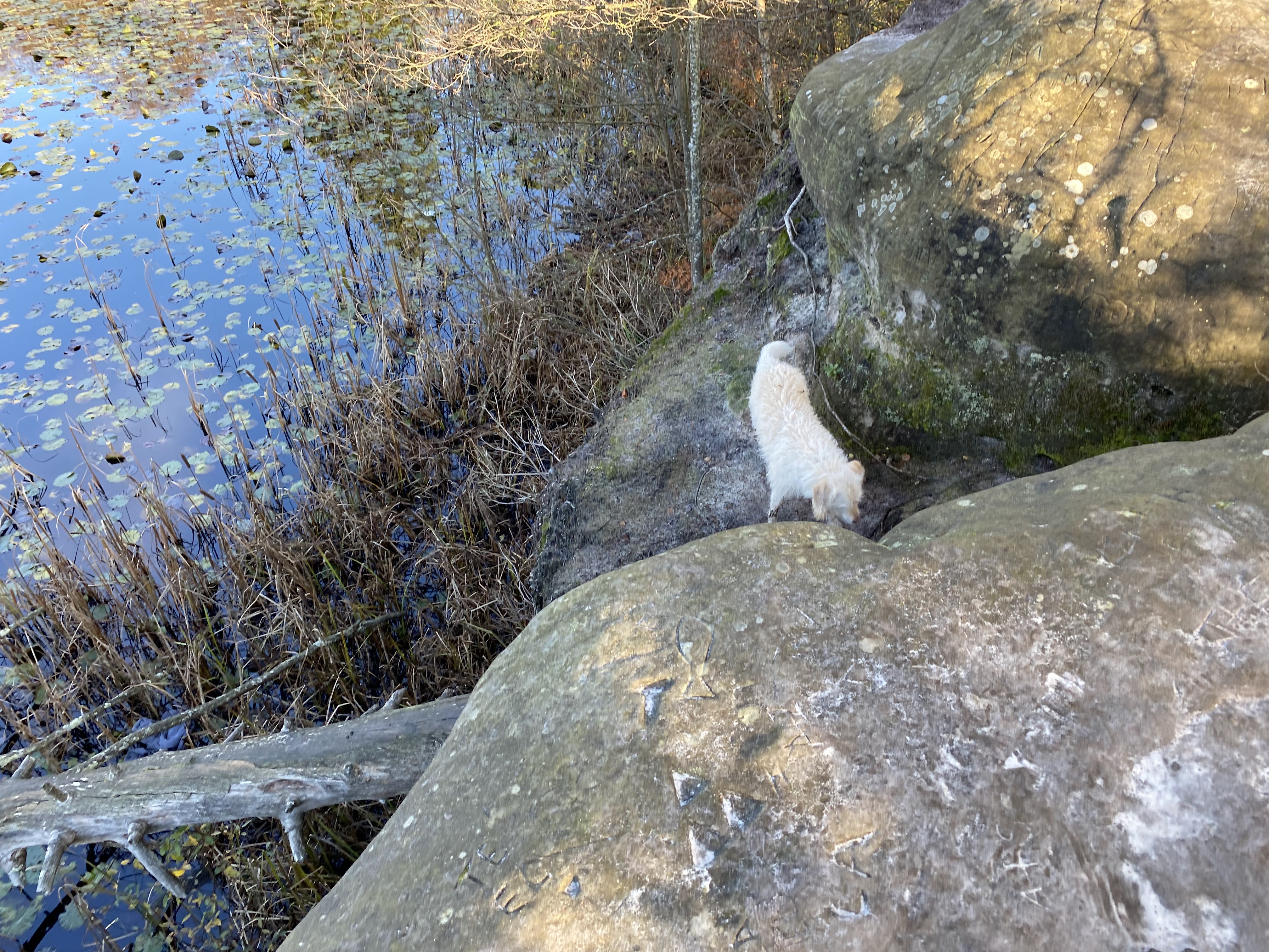 Nature in its truest form is more apparent where there are dead or fallen trees – though the mass flattening of hundreds of trees in the October 1987 hurricane is not apparent. I rather believe that with rhododendron invasion the site would otherwise be a mass of 40 year old densely tangled waxy leaved evergreen rhododendrons. Despite their threat as an invasive plant the cherry laurel planted along the dam as a hedgerow remains – it is about as appealing as a neighbour eager to shut out prying eyes from a private garden and looks out of place, or is just another boundary like a wall, road, by-pass or fence.