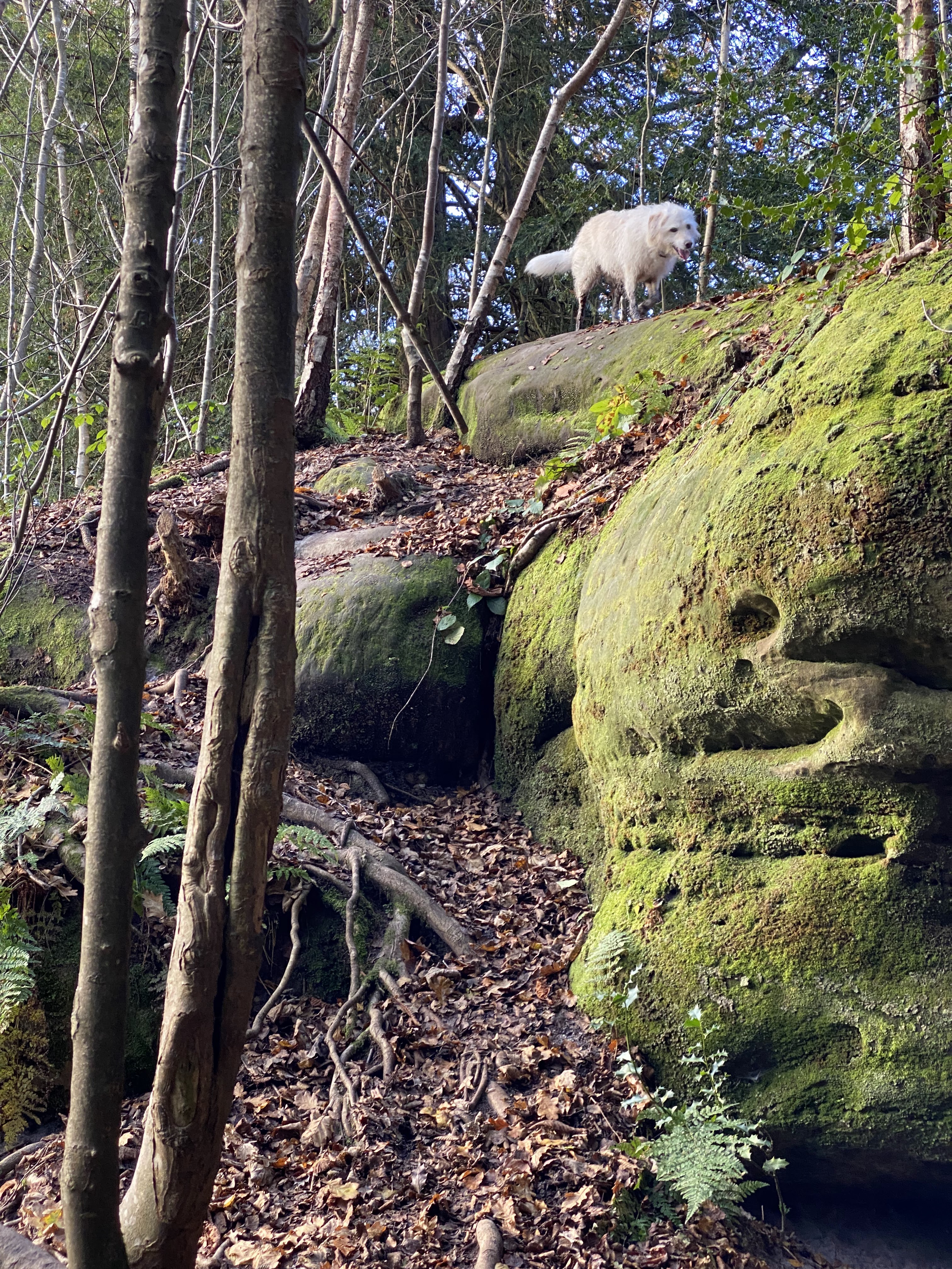 A pond was enlarged, features carved in the sandstone outcrops and exotic specimen trees planet as a part of the ‘Gardens and Pleasure Grounds of Rocks House’. This would make the oldest trees, both conifers and broadleaves, some 140 years or so old. Armed with a tape measure this is what I found with a ‘veteran’ sweet chestnut, beech and giant redwood, in turn with girths of approximately 300cm to 500cm. It is likely that theee were all planted around the same time in the 1880s.