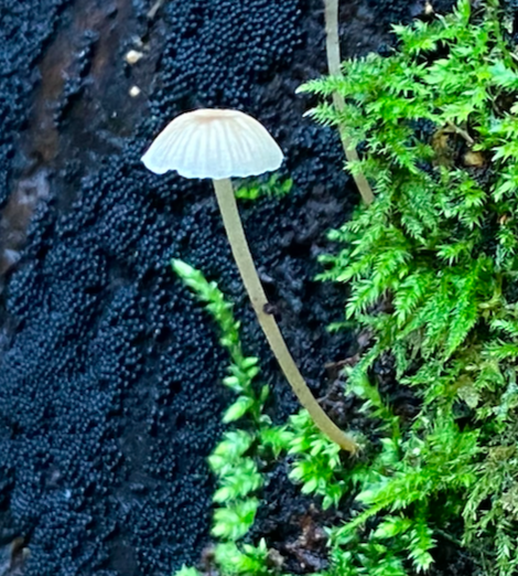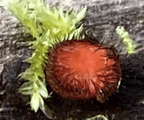 There are often treasures buried within. Pay close attention. Really carefully. Some of the late-December goings-on here required a family effort on Boxing Day and some extra ‘young eyes’ : Bonnets, clustered woodtuft, candlesnuff, jelly bean … but the ‘jaw dropping’ moment was when I took a closer look at the tiny red/orange dots in the moss: