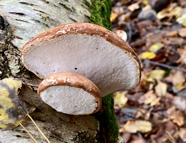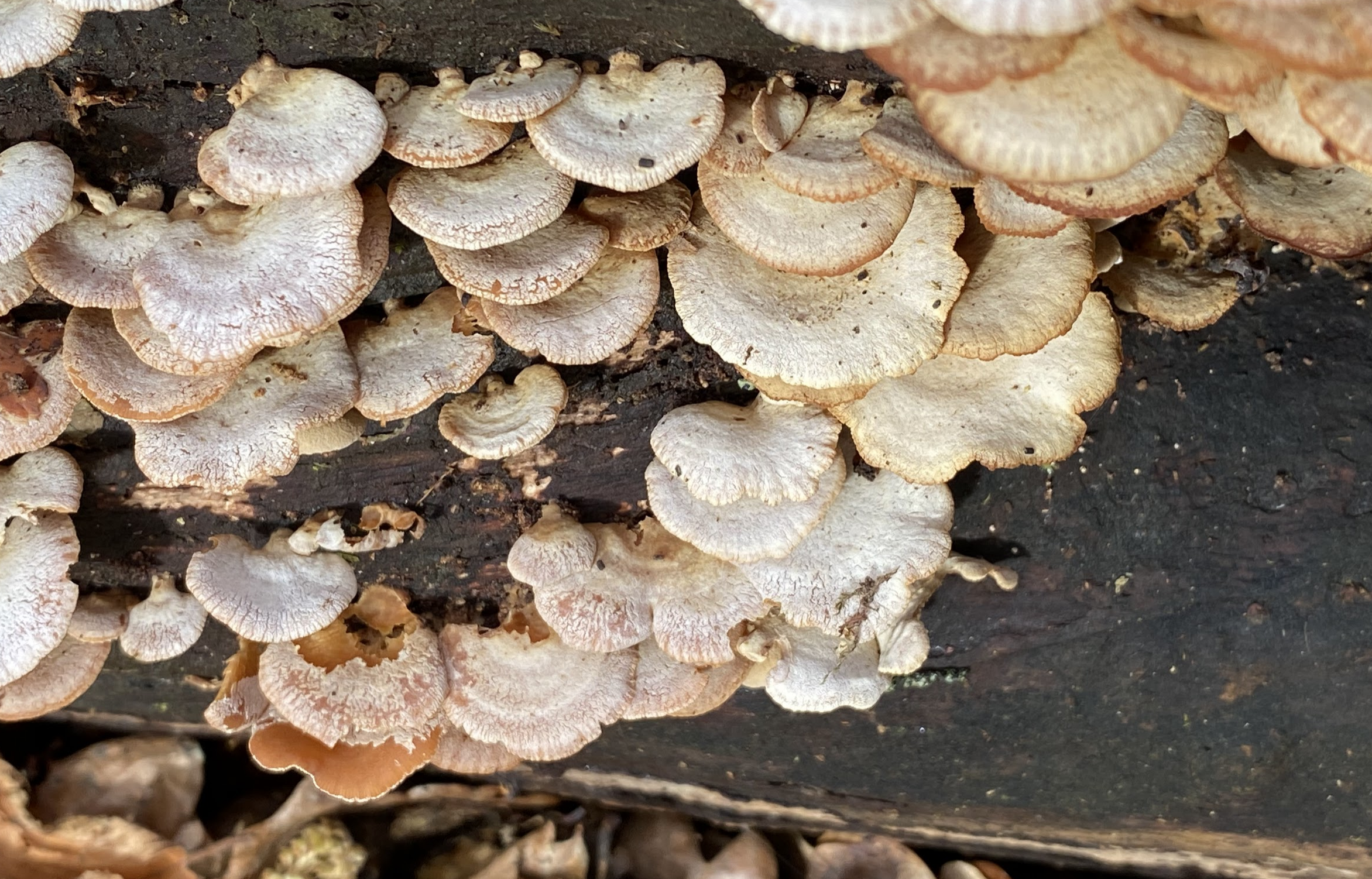 As well as these, blushing bracket: Flat and woody, becoming darker with age. Apparently it can be used as sandpaper, and historically as a firestarter.