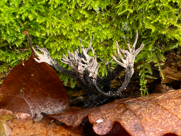 Cinder Fungus is a common-place wood-rotting fungus with a distinctive appearance, eventually developing a black, charred-looking exterior that resembles burnt wood. It is widespread across Markstakes Common, and in some instance covering old, decaying trunks and boughs of Beech, Oak and Hornbeam