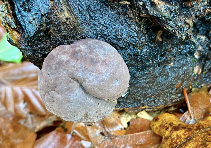 It is here in October that you are likely to find the Beech trunk, from the ground to 16ft smothered in slimy beech cup fungus. Attractive in the first days, it soon poses and melts what I liken to copydex, the slimy, sticky, smelly kids glue.