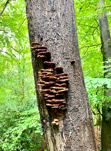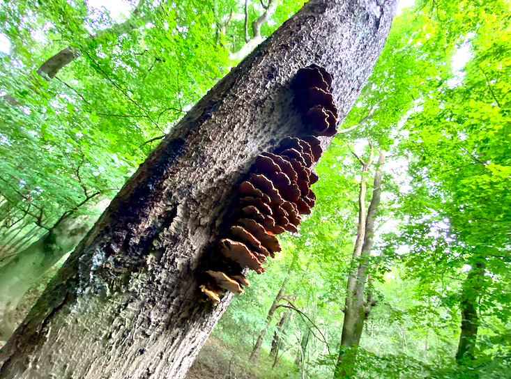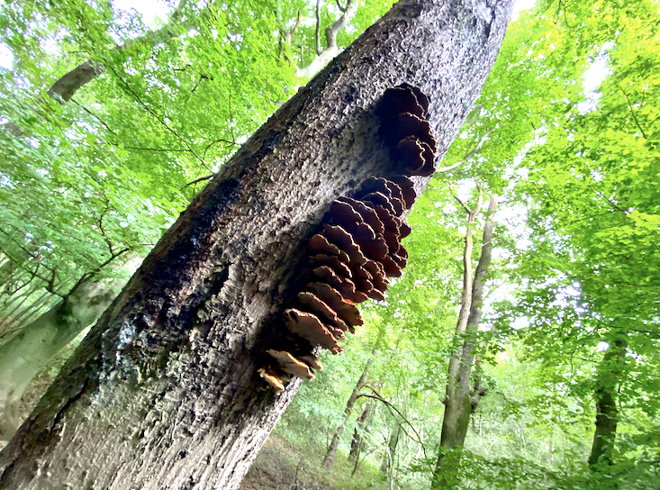 As you head towards the notable Beech with its companion oak, there’s a stump here that develops a considerable amount of Turkey Tail (or some crust or other!)