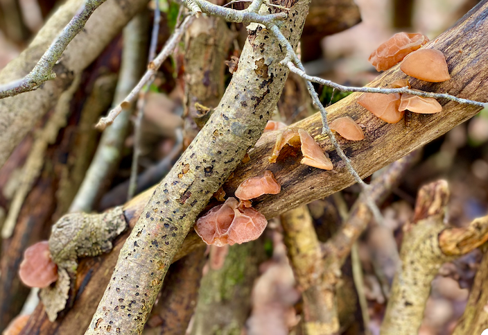 Jelly ear can be found everywhere too, or at least it feels like that. It seems to colonise an entire rotting limb or decayed bough. Find one like this and show it to a child and you might freak them out. They can look very ear like indeed.