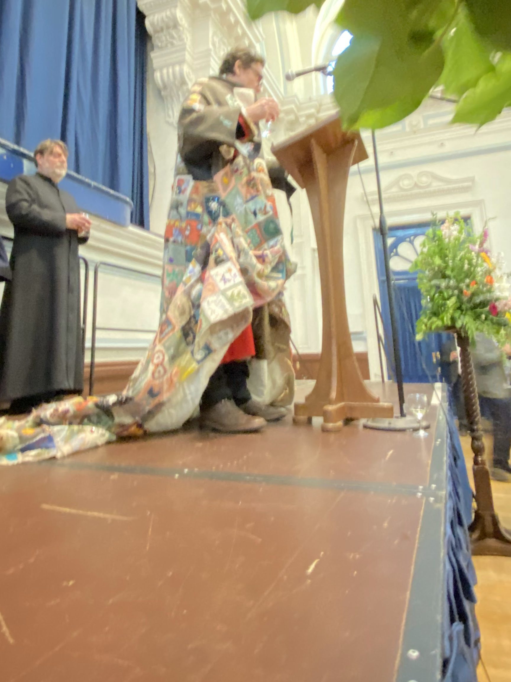 Given his career involvement with sustainability initiatives as well as his regional interest in the restoration and protection of the River Ouse through organisations such as Love Our Ouse and the Rights of Rivers, Matthew Bird is a touchstone for environmental issues in Sussex, not just in Lewes and Lewes District. When he appeared on the Town Hall stage to offer a toast, he put on a ‘Coat of Hope,’ the creation of artist Barbara Keal, the very coat that had wended its way from Newhaven to Glasgow for Cop26 in November 2021. The newly appointed mayor explained what this coat of hope represented and what meaning it would bring to his tenure, stating that due to the drought last year, events that were predicted to happen in 2030 had already occurred in 2022.