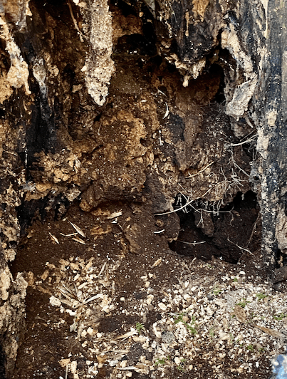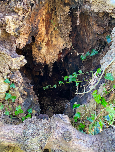 The trees I am expected to spot have ‘ancient characteristics’: they show signs of a hollowing trunk and hollowing branches, crevices and holes in their bark, water holes, fungi blooms, lichen and moss, burrs, broken branches and dead wood on the ground.