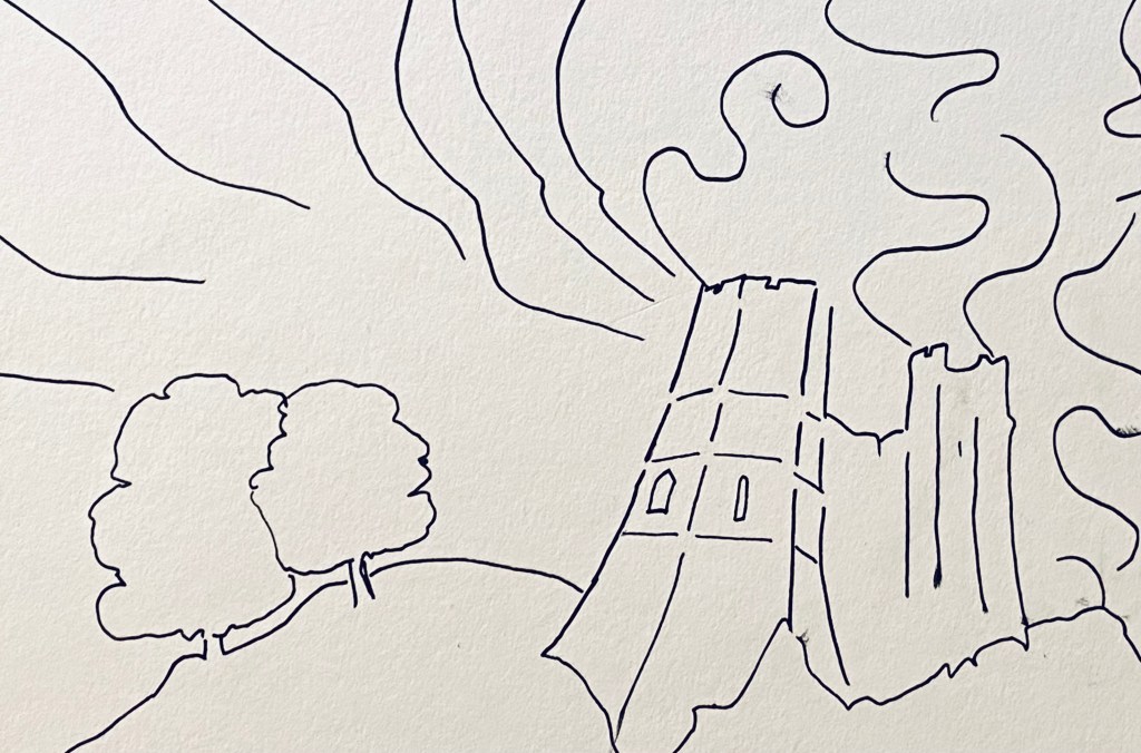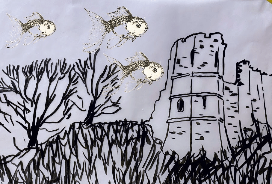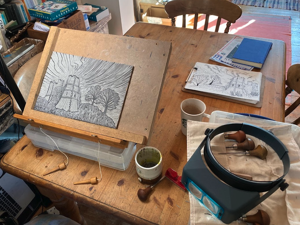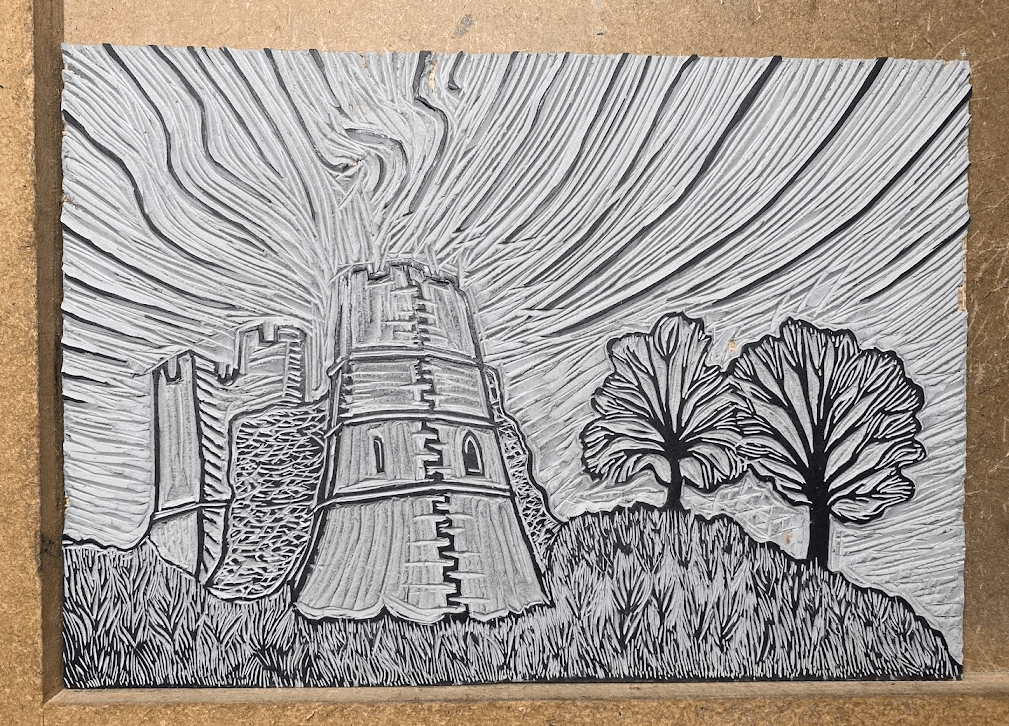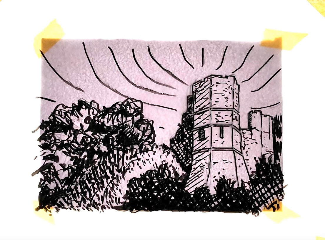 My relationship with Lewes Castle began with sketches across the seasons. I examined its location on the mound and its relationship with the trees, the grounds, and the sky.