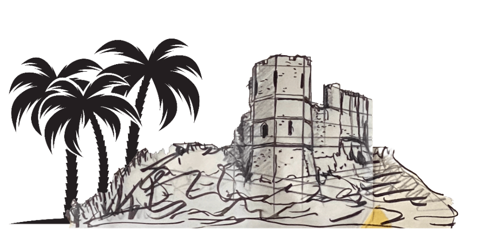 I deliberately distorted the view to evoke drama, embracing a more imagined, fisheye-like curvature and exaggerating the tower’s prominence. I even experimented with AI-assisted geometry to create a hexagonal stone tower, which helped me visualise how exaggerated distortion could function.