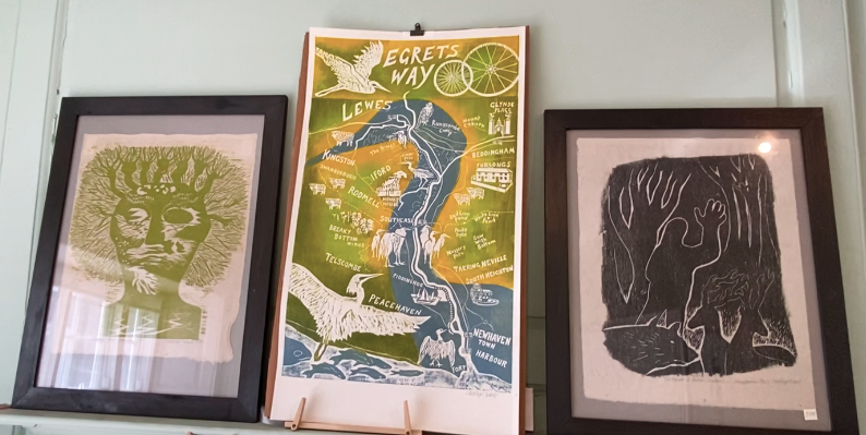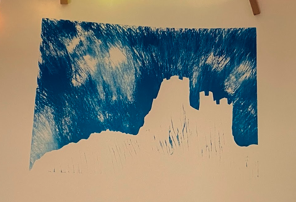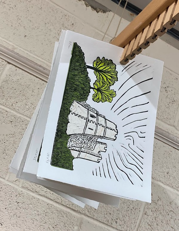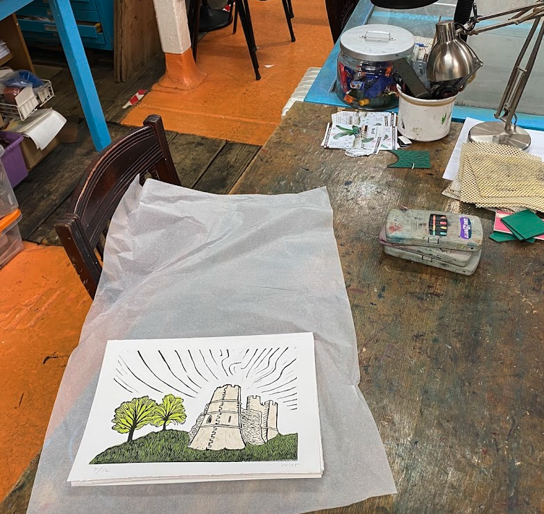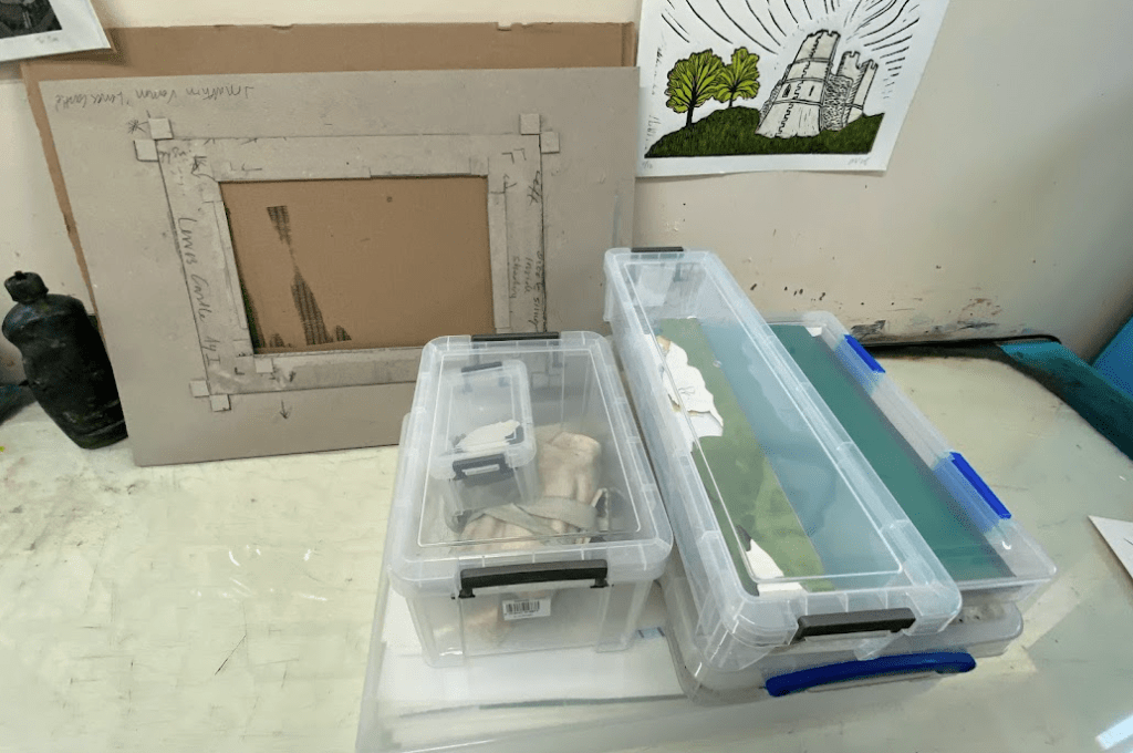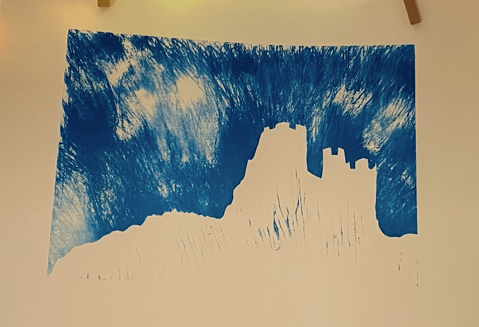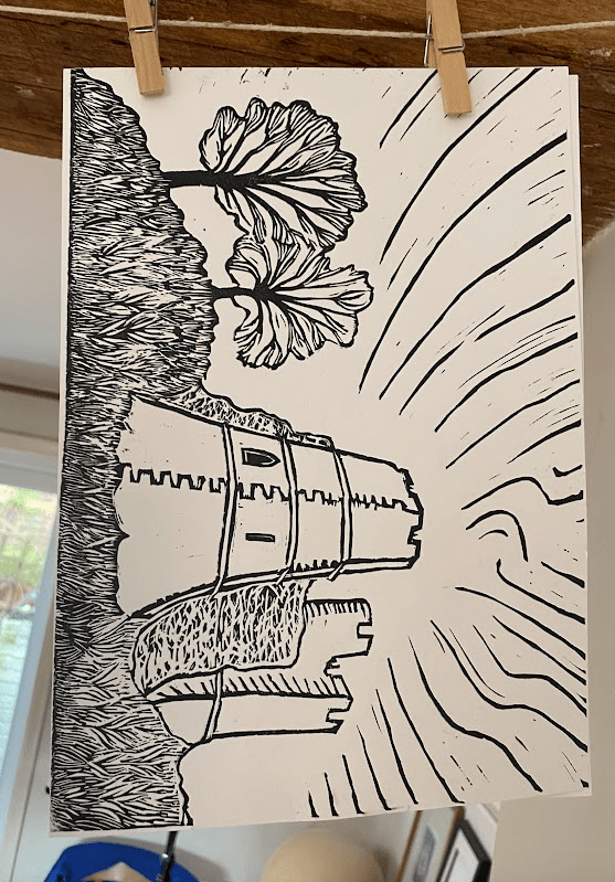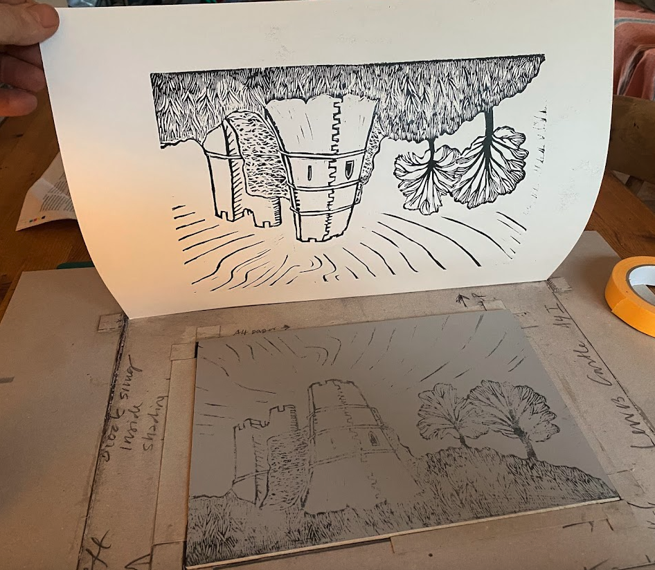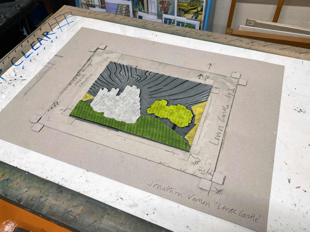 Before cutting into lino, I looked into printmakers’ past and present work, studying figures such as Jean Moro, Matisse, Lawrence Weiner, and Eric Ravilious.
