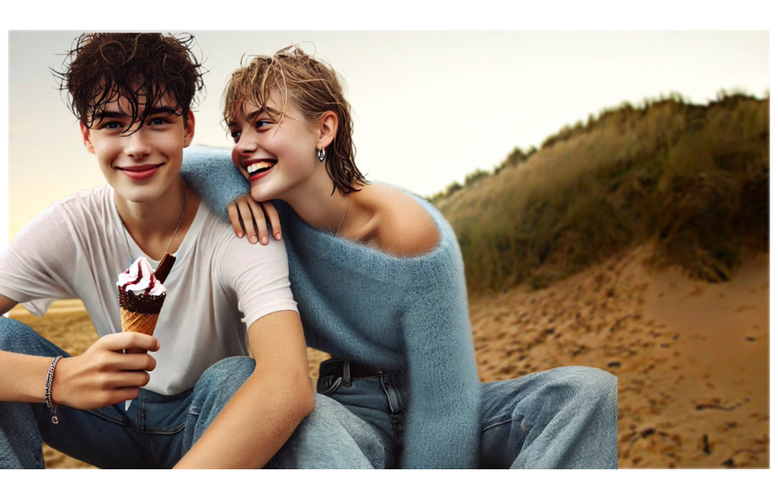 They lay side by side in the dunes, sand in their hair, their arms brushing against each other occasionally, as if unintentionally. The sea was somewhere below them, churning softly, while the sky above resembled the end of a day that might never come again.